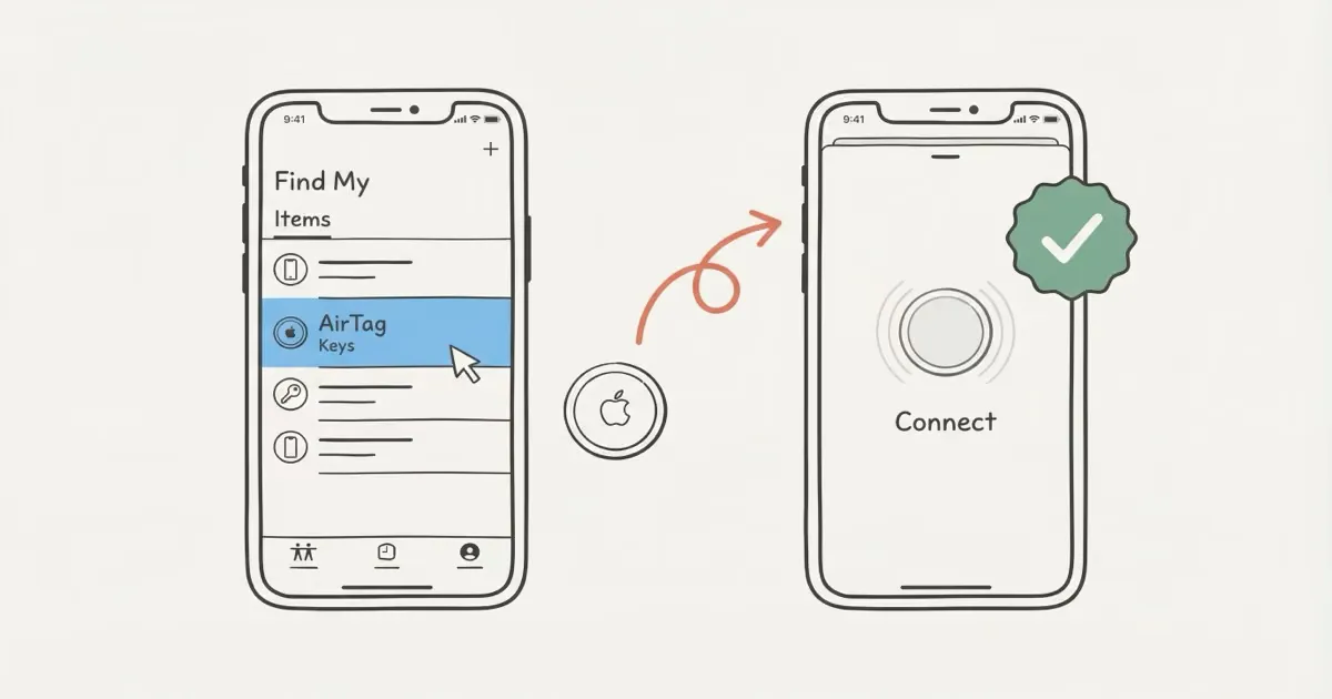 To change AirTag owner: the current owner removes it in Find My (Items tab, select AirTag, Remove Item). If the AirTag is out of Bluetooth range, the new owner manually resets it by pressing the CR2032 battery in and out five times. The fifth press produces a distinct tone confirming the reset. Then the new owner holds the AirTag near their unlocked iPhone to pair it. The whole process takes under 5 minutes when the AirTag is in hand.