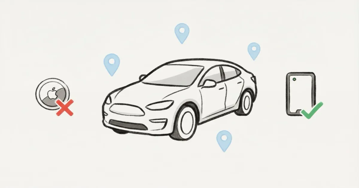 The reliability issue matters too. AirTag doesn't have GPS or cellular -- it relies on nearby iPhones to relay its location through Apple's Find My network. In a dense city, updates come every few minutes; park a car in a rural lot overnight and you might get zero updates until morning. For a platform that needs to track thousands of vehicles reliably, Bluetooth trackers aren't dependable enough.