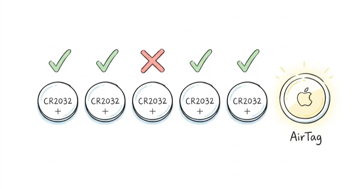 Some Amazon listings for "AirTag compatible CR2032" are repackaged no-name cells with inconsistent quality. Stick with Panasonic, Energizer, Murata, or Maxell. You'll spend $1.50 per battery instead of $0.80, but you won't waste 20 minutes troubleshooting why your AirTag 2 stopped working.