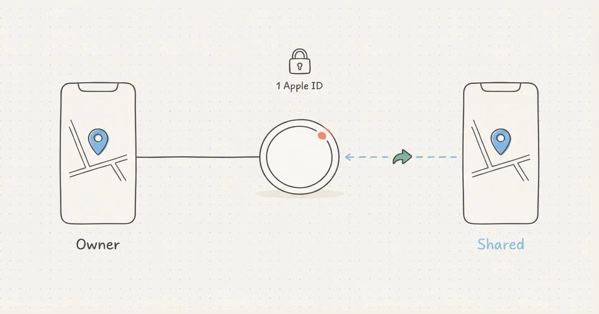 An AirTag can't be paired to two phones. But since iOS 17, it can be shared with up to 5 other people, and that covers what most families actually need. Open Find My, tap your AirTag, add the people you trust, and everyone sees the same location. If you're buying a used AirTag, make sure it's been removed from the seller's account first. And if someone in your household uses Android, an AirTag won't work for them as a borrower.