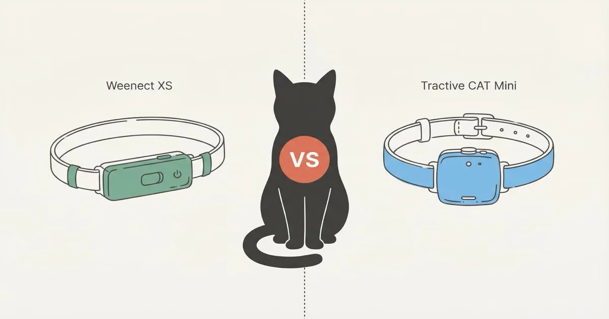 Both trackers have evolved since 2023. The Weenect XS replaced the older Cats 2, dropping the weight to 27g and adding IP68 waterproofing. Tractive's CAT Mini sits at 25g with IPX7 water resistance. Here's the current comparison.